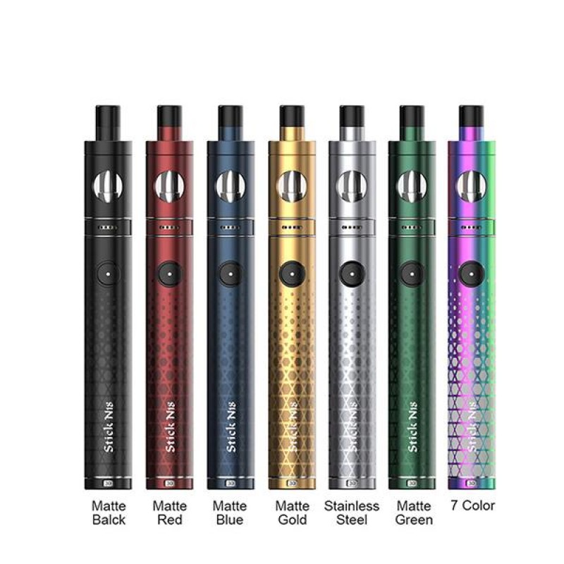 Smok Stick N18 Kit | 30wThe SMOK STICK N18 30W Starter Kit, featuring an adjustable 9-30W output range, Nord Coil Compatibility, and 3.0mL tank capacity. Constructed from durable zinc-alloy, the chassis of the STICK N18 is impervious to light falls and drops while maintaining an easy-to-use form-factor. At the bottom of the STICK N18 is a 5-setting wattage control dial, outputting different levels..