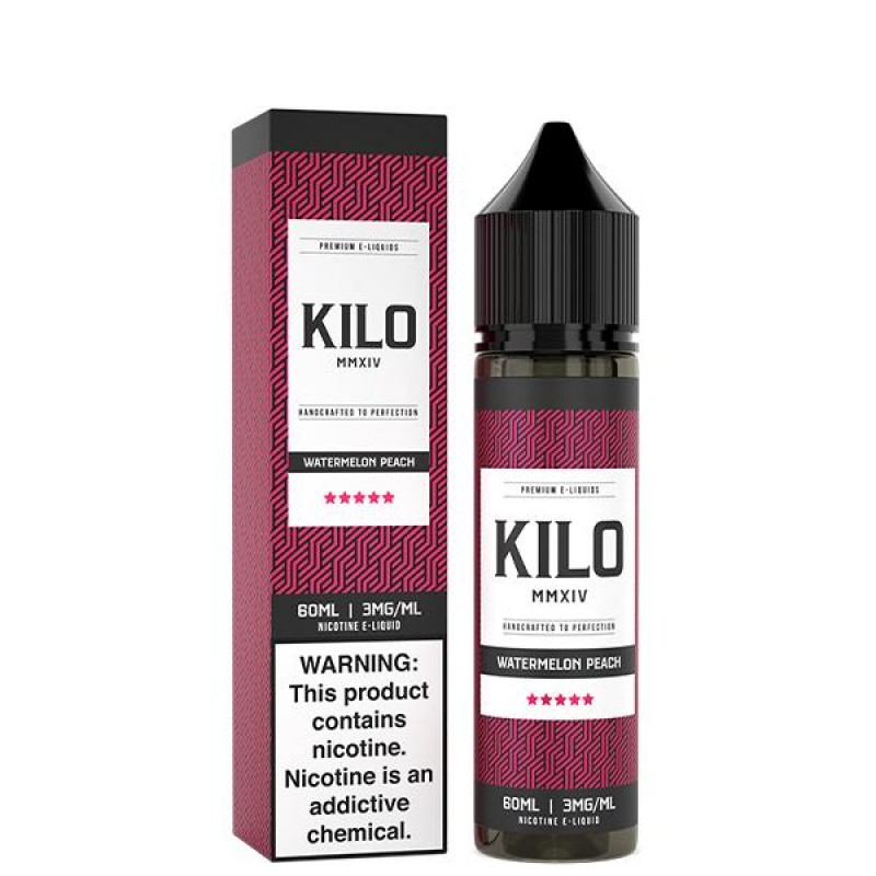 Watermelon Peach by Kilo E-LiquidWatermelon Peach by Kilo E-Liquid a magnificent blend of sweet summertime watermelons followed by a splash of heavenly peach nectar.Flavors:• Watermelon Peach – Watermelon | PeachFeatures:• Bottle Size - 60mL Unicorn Bottle• Available Nicotine - 3mg | 6mg• VG/PG Ratio - 70VG/30PG ..